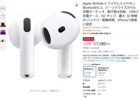 Amazonでアップル製品GWセール。AirPods 4が22% OFF