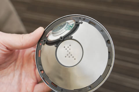 振動板の周囲のバッフルは、同等製品の約2倍の開放面積を持ち、ドイツ製精密ステンレスメッシュで覆われている。このメッシュは音響インピーダンスを正確に定義し、低音と高音の優れたバランスを実現するという。