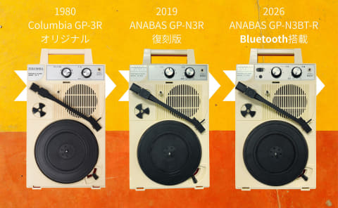 日本コロムビアのポータブルレコードプレーヤー銘機、Bluetooth対応で復刻。ANABASから