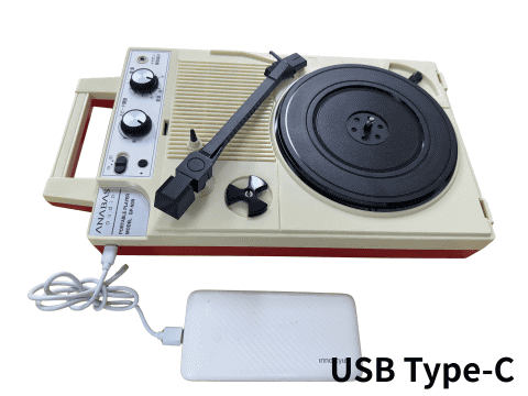 ターンテーブルの回転数は33 1/3rpm、45rpmに対応。回転スピードを調整するツマミを搭載し、スピードの変化範囲は約5%。3.5mmのステレオミニ出力を備えるほか、スピーカーも内蔵する。針はオーディオテクニカ製のものを搭載している。