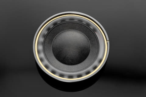 従来の振動板では高域において分割振動が発生しやすく、音の純度に影響を及ぼすことがあるが、カーボンファイバー複合振動板はより高い周波数帯域においても安定した振動状態を維持でき、微細な音の再現性を高めるほか、適度な内部損失特性により不要な共振を効果的に吸収する。
