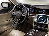この新クアトロポルテ専用オプションとして、B&Wのオーディオシステムを採用。合計15基のスピーカーと、16ch/合計出力1,280WのClassDアンプを使用。スピーカーのうち1基はデュアルボイスコイル搭載で、2つのアンプを用いて駆動する。ユニットには、アルミドームツイータやケブラーコーンのミッドレンジ、ロハセルのウーファなど、「B&W 800シリーズ」と同じ素材/技術を使用。