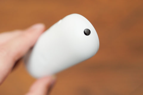 丸い筐体から短いHDMIケーブルが伸びているデザインは、第2世代のChromecastと同様だが、新機種では筐体部分が少し大きくなっている。ただ、薄い筐体であるため、あまりサイズ的な圧迫感はない。サラサラした手触りで、プラスチック感が強かった第2世代と比べると高級感がある。