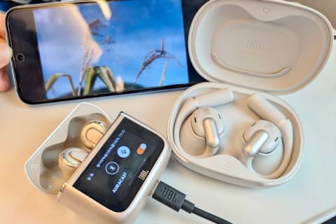 さて、Auracast再生を行なうには、コンテンツを再生するスマホなどのデバイスのほかに、「Auracast送信するブロードキャストデバイス」と「Auracast受信デバイス」が必要となる。筆者は今回、JBLの完全ワイヤレスイヤフォン「Tour Pro 3」と「Sense Pro」を使った。