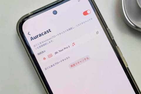 で、そのイヤフォン本体が、しっかりAuracastの受信デバイスとして使えるのだ(※Tour Pro 3とは異なり、充電ケースがAuracastのブロードキャストデバイスにはならないので、Auracast送信対応機器が別途必要となる)。