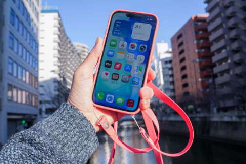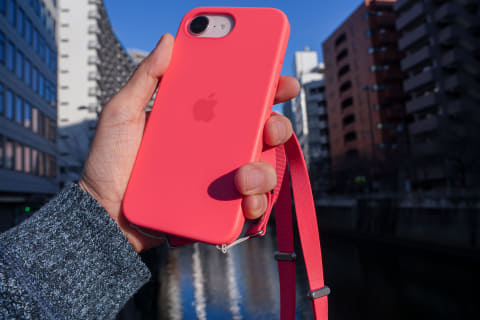 同時に用意されているアクセサリーであるケースやクロスボディストラップもカラーが変わった。本体と同じソフトピンクに加え、より華やかな色合いのブライトグアバが追加された。今回レビュー機材とともに貸し出されたのはブライトグアバだが、悪くない取り合わせだと感じる。新色のケースは、他のiPhone 17シリーズ向けにも提供される。