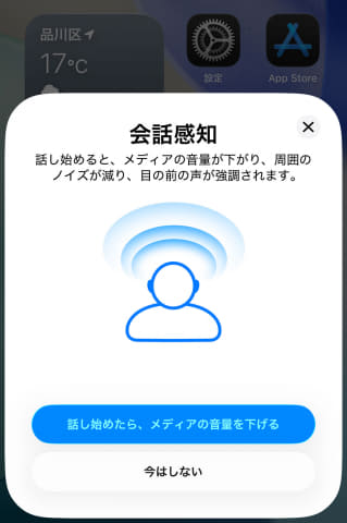 別の言葉を話す人と対話するための「ライブ翻訳」、こちらに向けて誰かが話し始めると音楽をミュートする「会話感知」、周囲のうるささや人の話し声に合わせて外部音と音楽をミックスする「適応型」の外音取り込みなどが挙げられる。