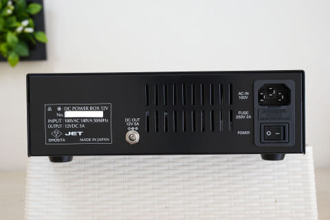 DC出力のコネクタ仕様は最も普及している2.1mm/5.5mmのセンタープラス。定格消費電力はDC POWER BOX 5Vが80VA、DC POWER BOX 12Vが140VA、DC POWER BOX 19Vが180VAだ。実際にパワーアンプ接続時の消費電力をモニターしてみたが、3W程度で推移していた。リニア電源は、発熱が大きく効率に劣るといわれるが、常に大きな電力を消費する訳ではないので安心してほしい。