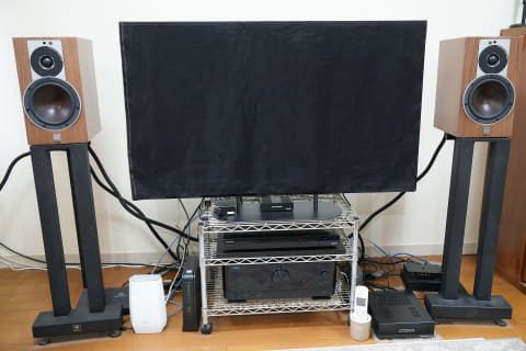 リビングオーディオのシステムは、ネットワークプレーヤーとしてヤマハのAVアンプ「RX-V6A」。ネットワークスイッチはサイレントエンジェルの「N8」を使用。スピーカーはDALIの「RUBICON 2」だ。