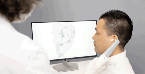 それが終わると、今度はTONALITEにきちんと遮音できるようにイヤーピースを取り付けて耳に装着する。すると耳にキーンというスイープ音が強弱で聞こえ、すぐ測定は終わる。