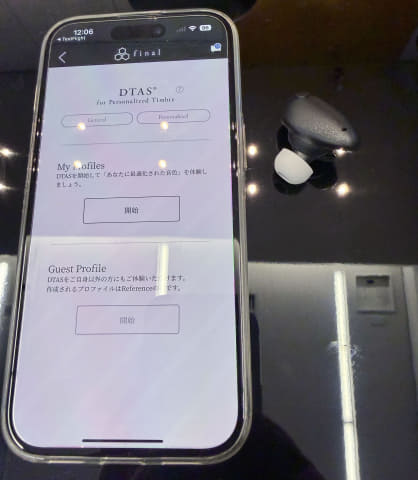 ここまで確認すると、別室にその適用済みTONALITEを持参して、今度は自分のスマホで試すことができた。ただし自分のスマホにはTONALITE用のアプリはまだないので、DTAS設定が適用された音だけを聴くことができた。