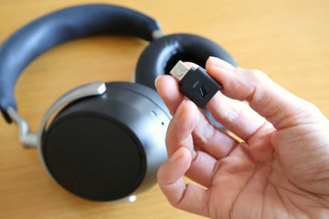「音質優先のBluetoothヘッドフォンを見るときに、iPhoneとの接続をどう考えるか?」はポータブルオーディオ要素のひとつであるが、HDB 630はUSB-Cドングルを標準同梱することでそこに対応してきた。