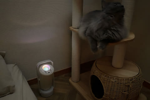 惜しい点としては、レンズの近くを通ったら消灯するといった安全機能がないこと。我が家は猫がいるので、近づいてくるとサッと手でレンズを隠すことに。価格を考えれば、求めすぎかもしれませんが、ペットや小さなお子さんがいる家庭は留意したいところです。