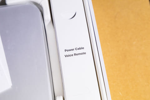 iPhoneのようなマットな質感の箱を開けると、中には本体、リモコン、簡易マニュアル、電源ケーブルのほか、RCAアンバランスケーブルと光ケーブル、HDMIケーブルまで同梱されています。まず音を出すにあたり、ケーブルなどを別途買いに行かなくてよいのは嬉しいところ。