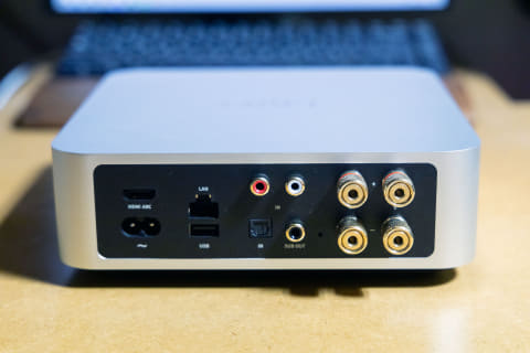 ひとつは小さくて多機能であること。大きさは19×19×6.3cm(幅×奥行き×高さ)とコンパクトなボディに、チャンネルあたり60W(8Ω)のクラスDアンプとストリーマーの機能を詰め込んだというから驚きです。ちなみにD/A変換ICは、音質に定評のあるESS製とのこと。