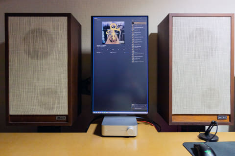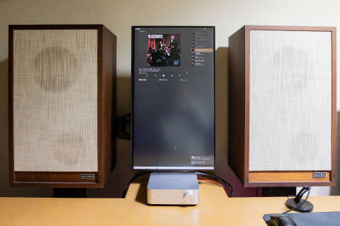 筆者の場合、ディスプレイの下に置いてみました。実にピッタリの大きさで、ちょっと手を伸ばせばボリュームノブに触れられます。これがやりたかったんですよ。