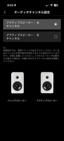 大半のアクティブスピーカーはL/R固定で、M90も電源ケーブルをつなぐ側のユニットがRチャンネルだが、コンセントがパッシブ(L)側にあるなど不都合があれば、アプリでL/Rを逆転させればいい。入力がAUXの場合はLRの端子を入れ替えればいいが、BluetoothやUSBの場合はそう簡単にはいかないから、必要とされる場面は意外に多いはずだ。
