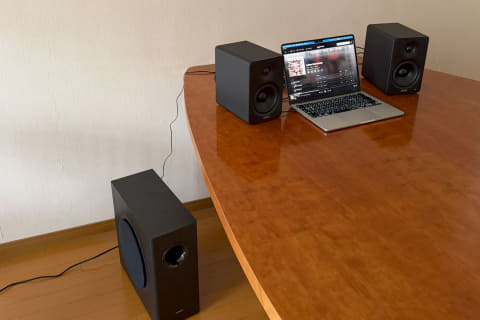 とはいえ、MacBook Airの画面サイズ(13インチ)にあう視聴位置では、広々とした音場を得られるような位置にスピーカーを置くことは難しい。それに低音の量感、特にアクション映画に必須の「重低音」が足りないことも否定できないところだ。さすがに、デスクトップ/ニアフィールド指向のアクティブスピーカーに求める要素ではないものの、M90にはサブウーファー端子が用意されているので、試さないわけにはいかない。