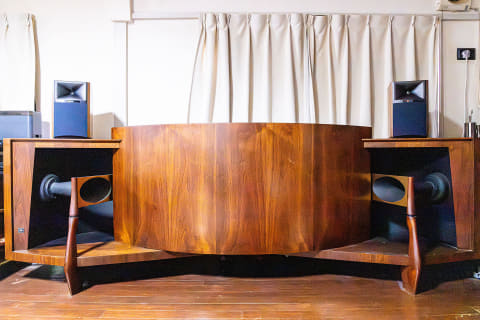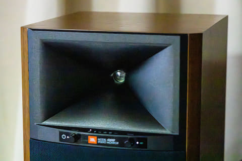 1つ目が、今も「コンプレッションドライバー+ホーンを搭載したスピーカーを造り続けている」こと。ラッパみたいなものから音を放出しますので、ちょっと独特の音しますが、これがハマればマジ最高! 他社にはないJBLならではの魅力です。