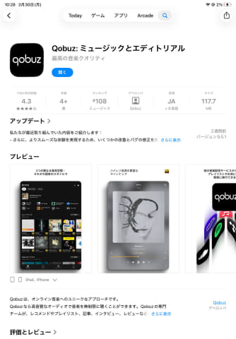 まずは手持ちのiPadでApp Storeにアクセス。Qobuzアプリを見つけてインスト―ルします。