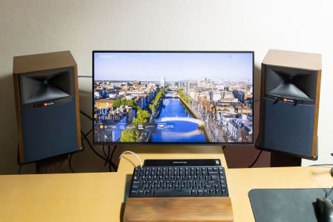 「流石に大きいんじゃないの?」と思われた方。写真を御覧ください。27インチのモニターと高さがピッタリではありませんか! となると「置いたとして音はどうなのさ?」というのが気になるところ。