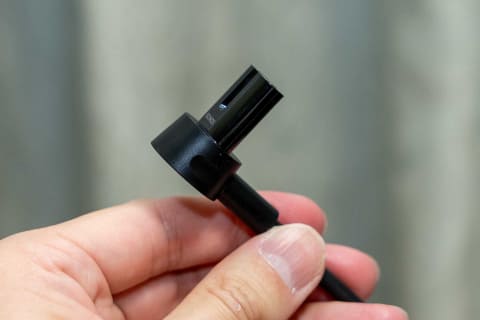 本体の電源ポートは底部にあり、下から上に挿し込む形。専用ケーブルのコネクタもL字型で、背面からコネクタが出っ張らず、スマートにケーブルを取り回せる。底面にはネジ穴もあり、別売りの壁掛けアクセサリ、スタンドとの組み合わせにも利用できる。