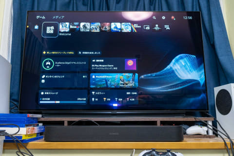 サラウンドを手軽に楽しむ方法としてはヘッドフォンを使うのが一般的だが、頭部の締めつけ感や耳元の蒸れが気になりがち。今回試したサウンドバー+リアスピーカーなら、そういったストレスなく長時間でも作品に没頭できる。