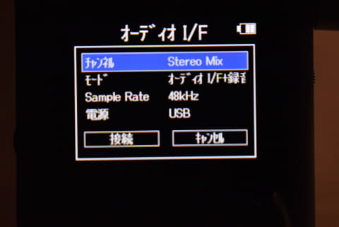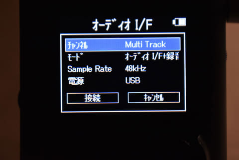 オーディオインターフェイスとして使用するには、USBの設定において、ファイル転送かオーディオI/Fかを選択することで機能が切り替わる仕様。