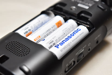 実際の音はどんな感じなのか。まずはこれに単3電池×4本を入れて、サンプリングレートは96kHzで32bitフロートに設定したうえで、屋外に持ち出してみた。