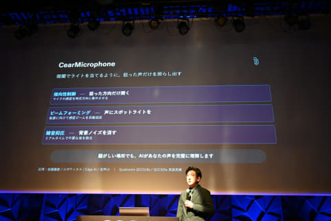 今回の発表では、Cear ConnectエコシステムにリモートマイクロフォンとしてCearMicrophoneを組み込む方向性も示された。Qualcommとの社会貢献プログラム(YSBプログラム)の文脈で、難聴者向けの指向性音声拡聴システムへの展開も視野に入れているという。