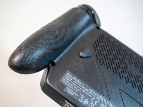 ROG Xbox Ally Xは、Xboxのコントローラーを意識したグリップがあり、その分厚みを感じやすくなっているが、持ちやすいため負担は少ない。