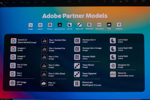 この方針は完全にアドビの基本戦略となった。Googleはもちろん、OpenAIやLuma AIなど多数のAIサービスプロバイダーと連携し、Photoshopなどのツール内から自由に選んで使える。