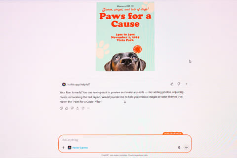 もう一つの「対話的生成」として、ChatGPTからAdobe Expressを使うデモも行われた。これもまた、チャットという作業の中で対話しながらCreative Cloudを使う姿でもある。