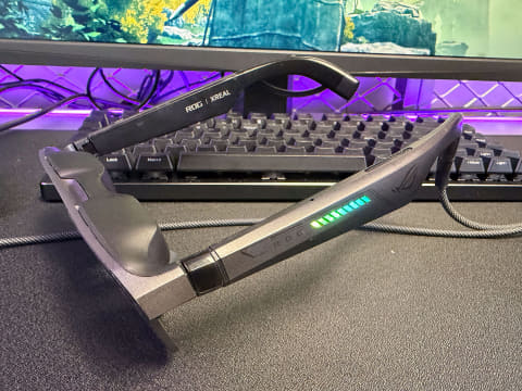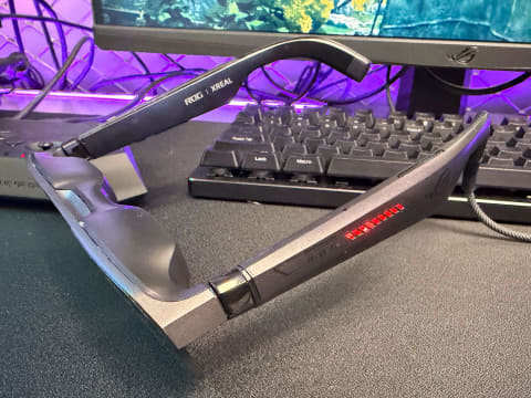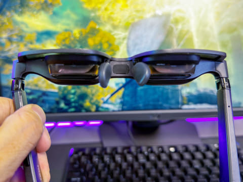 デザインもXREAL Oneなどとは異なり、よりゲーマー向けのROGっぽいものになっている。ツルの部分にライティングがあるのも、いかにも「ゲーミング」デバイスだ。