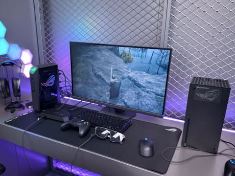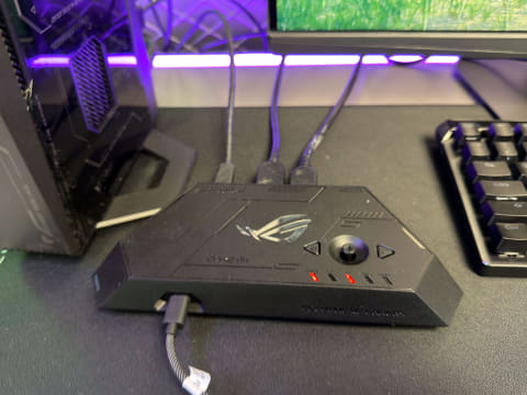もう1つの特徴は、「ROG Control Dock」が付属することだ。これはPCや家庭用ゲーム機を複数つないで切り替えたり、画質設定をしたりする際に使うもの。ROGのゲーミングディスプレイと同じ設定内容が出てくるようになっている。従来どおり、このドックがなくても機器(例えば「ROG Xbox Ally X」のようなポータブルデバイス)を直接つなぐことはできるが、自宅に据え置いて使う場合、使い勝手が増す。
