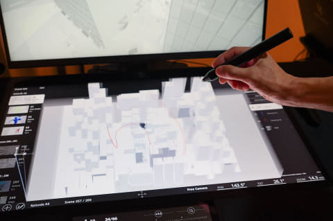 映像を作る時には動きや画角を確認するモノだが、3Dだとどうしても作業が大変で、専門のオペレーターが行なうことが多い。