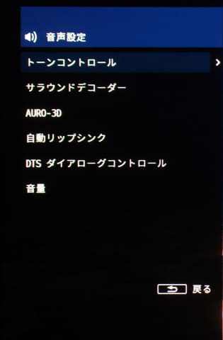 軽く試してみると、ドルビーサラウンドやDTS Neural:Xが映画館的なサラウンド感になるのに対し、AURO-3Dは音楽ホール的な響きや包囲感になること。前方主体の鳴り方も音楽再生には合うし、目の前の映像と音場の一致した感じが好ましい。映画はドルビーサラウンドなどが合うが、コンサートや歌番組、ドラマやアニメなども案外相性が良いと感じた。このほかはスピーカー設定、音声設定のほかはHDMI設定やネットワーク設定などの項目となる。