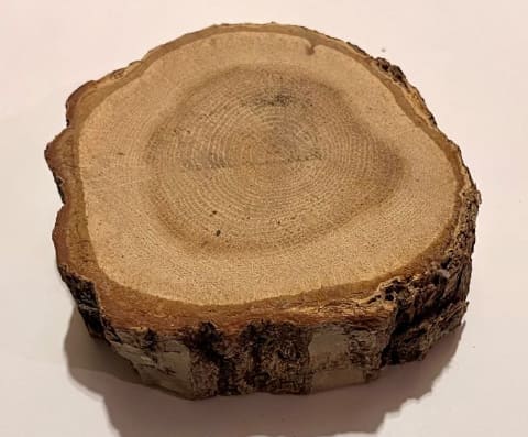 東急ハンズで入手したくぬぎの輪切りは、年輪がはっきりしていて、外形は適度に不定形になっている。木材としての密度は低く、乗せる機器の振動を伝えやすいけれども、振動の減衰能力はほどほどだろう。