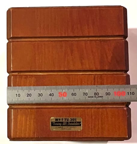 高さ12cm、側面11×12cmの大きな木製インシュレーター。大型スピーカーや大型アンプ用を想定したものだが、筆者はプロジェクターの置台に用いて立体感のある高画質を得ていた。特に三管プロジェクターには著効があった。