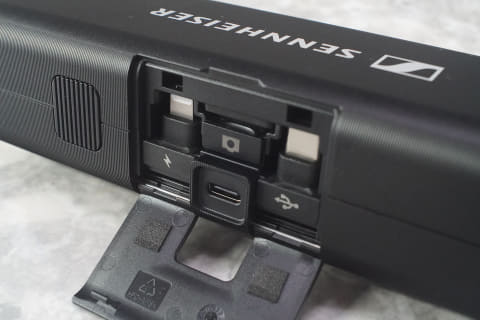 底部にはUSB-C端子があるが、これは充電用のようだ。手元に同じくゼンハイザーのUSB-C接続のラベリアマイクがあったので繋いでみたが、認識しなかった。