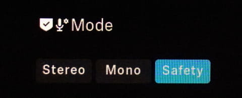 音声集音モードだが、「ステレオ」では当然ながらマイクを2つ使う前提なので、1chのみを使用した場合はカメラにはLchしか集音されない。一方「モノラル」に設定すると、同じ音声がカメラ側のLRに振り分けられる。