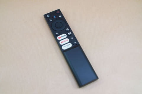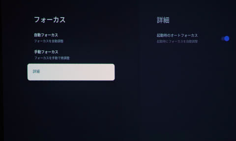 リモコンも見ておこう。Google TV対応リモコンとしては一般的なデザインだが、設定へのショートカットボタンがあるのはありがたい。またフォーカスやプロジェクタ設定へのショートカットボタンもあるので、設定変更はメニューを掘っていく必要がないのは楽だ。サービスボタンはYouTube、Netflix、Amazonプライムビデオの3つだ。