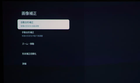 ただ台形補正が入ると、本来の解像度よりもコンテンツ面は狭くなるため、フルHDの解像度がでない。本来の解像度を楽しむには、台形補正に頼らず投影面に対して真正面から投影するといいだろう。