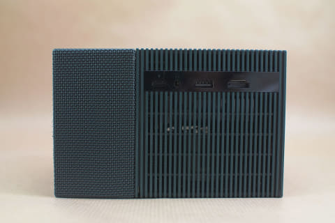 背面に入力端子があり、左からUSB-Cタイプの電源入力、ヘッドフォン端子、USB-A、HDMI入力となっている。なおHDMI入力は4Kに対応し、内部でダウンコンバートする。