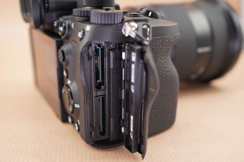 メモリーカードスロットはCFexpress Type AとSD UHS-IIのデュアルタイプで、これは前モデルと同じだ。ただCFexpress Type Aの採用は、現時点ではαシリーズだけである。色々な理由や背景はあるにせよ、他社カメラも併用するユーザーにとっては、Type Bの採用が待たれるところだ。