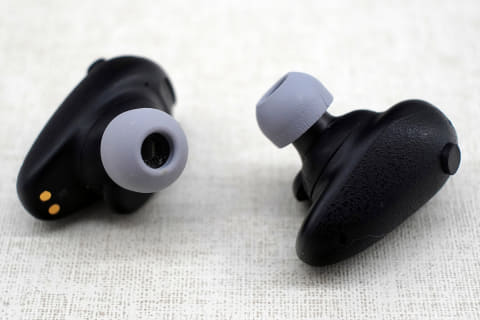 ボディ背面にゴム製の突起があるが、これは何かのボタンやスイッチではない。ケースからイヤフォンを取り出す際に、たまご型で滑るので、指がかりとして利用するものだ。