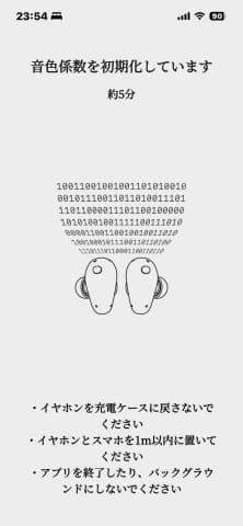 次にイヤピースを外してイヤフォンを耳に入れ、指で固定した状態で再び測定する。おそらく密閉されていない状態と比較する必要があるのだろう。これもまたサーバで分析される。