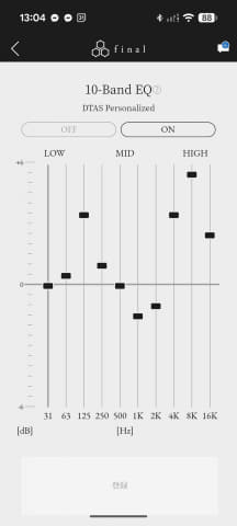 ユーザープリセット可能な10バンドEQも備えている。±6dBの可変範囲があるのでかなり音が作れるが、いわゆる色付けして聞きたい場合は別として、通常のリスニングであればOFFでも十分だろう。