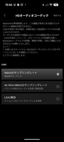 Bluetooth接続もLDAC対応なので、24bit/96kHz接続できる。ただそれ以外のコーデックはSBCだけなので、LDAC非対応のスマートフォンユーザーには若干厳しい作りである。