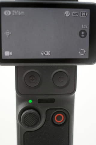 4は基本的な構造は3を継承しており、ディスプレイを回転させるという構造は同じだ。ただ今回は、ディスプレイを回転させることで、2つのボタンが現れるという作りになっている。ワンプッシュで2倍のロスレスズームができたり、センタリングなどの機能割付ができるようになっている。